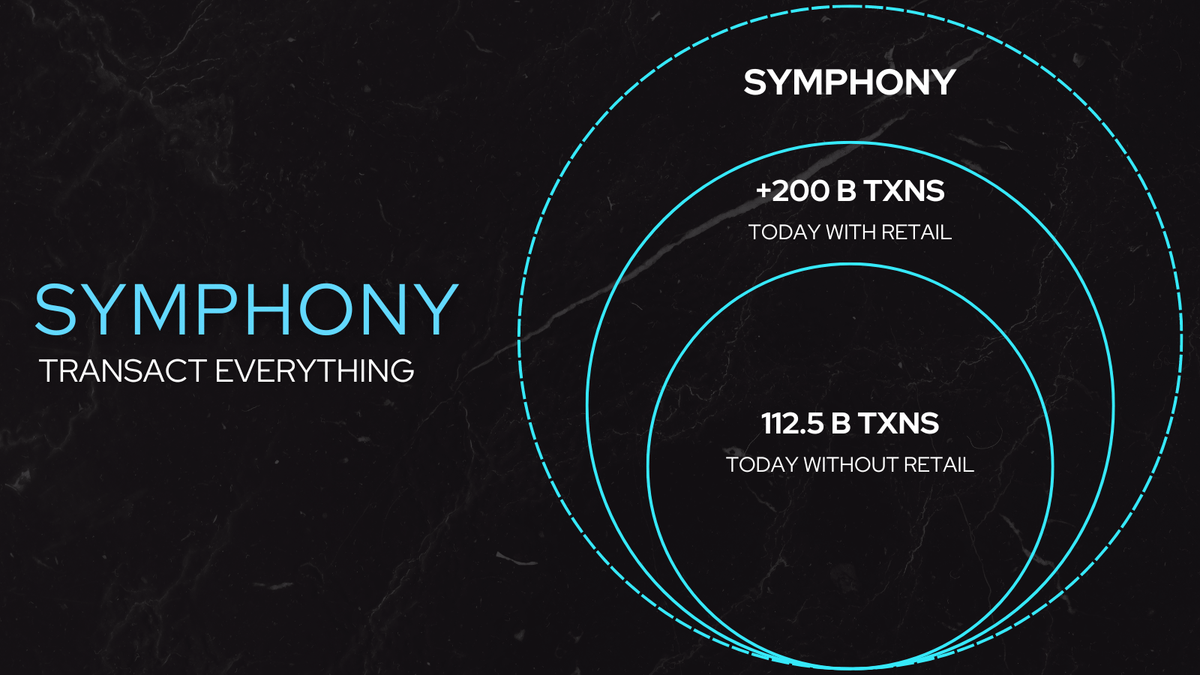 In the last year alone, an astounding 112.5 billion transactions were processed onchainâa figure that only hints at the potential of this market, especially considering the retail sector has yet to fully engage. Symphony is poised to not only handle this existing volume but to scale efficiently to accommodate even greater demand.