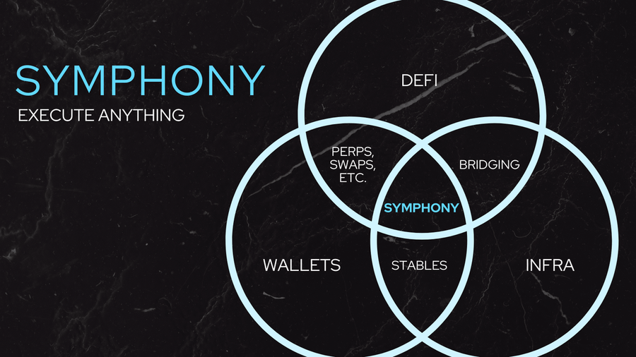 Built as a generalized infrastructure, Symphony's technology stack is designed to facilitate a broad range of onchain activities. In the near future, almost any transactionâfrom perp aggregation to lending, borrowing, bridging, swaps, NFT transactions, on-ramping/off-ramping, and much moreâcan be processed through Symphony. This not only opens new revenue streams for users and the protocol itself but also benefits nearly all other protocols by providing access to the fastest execution system in the crypto industry.